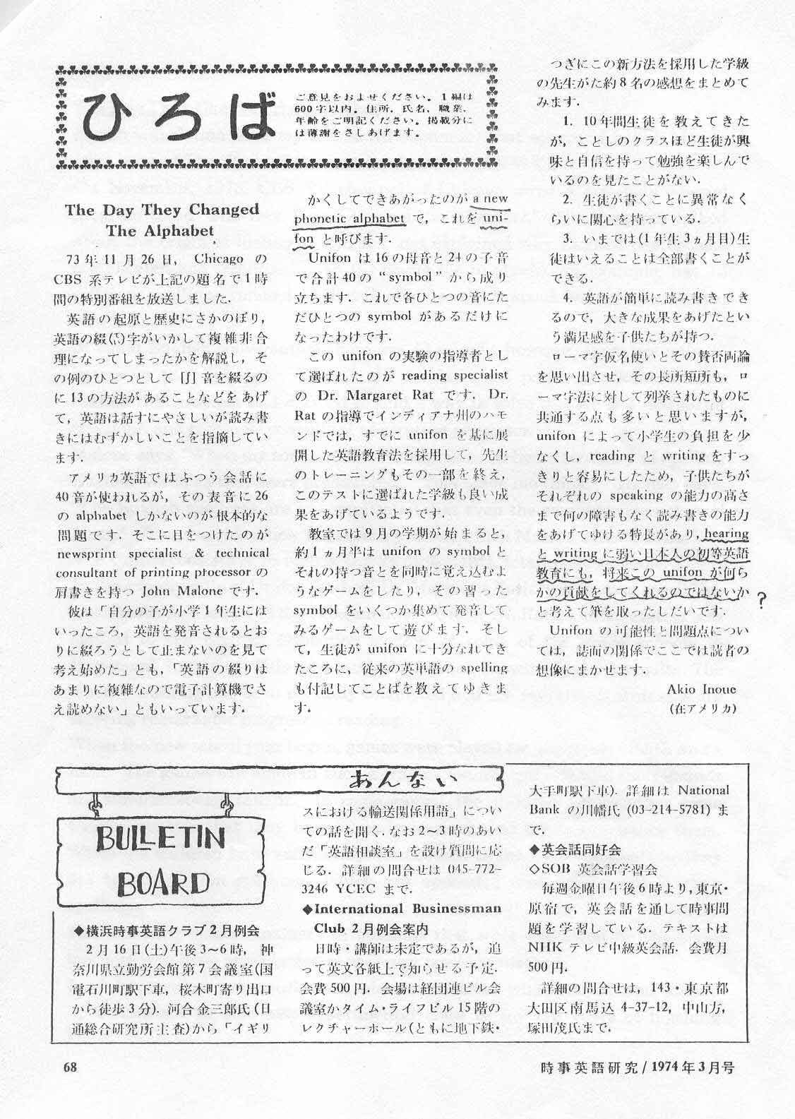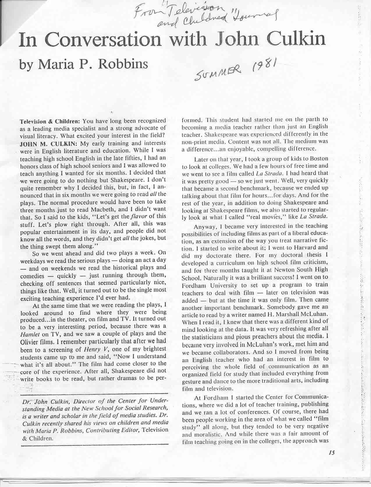 M. Culkin 1974 1977 1981 John R. Malone turned over the project to John M. Culkin, Executive Director of The Center for Understanding Media. The Center for Media Literacy includes an article on John Culkin John M. Culkin, Executive Director of The Center for Understanding Media wrote about UNIFON in this article for the Science Digest, August 1981. (see article at John Culkin) In an educationally deprived section of South Chicago, 1st graders were reading by Christmas with the UNIFON method. This class continued to have the highest level of reading proficiency of any class. Biography of one of the teachers at Howalton Day School (1947-1986), Ethel Darden / Using John R. Malone's UNIFON alphabet and trained by Dr. Margaret Ratz, Howalton, as cited by John Culkin in the New York Times of July 20, 1977 demonstrated the highest first grade reading scores in the Chicago area from 1974 to 1975