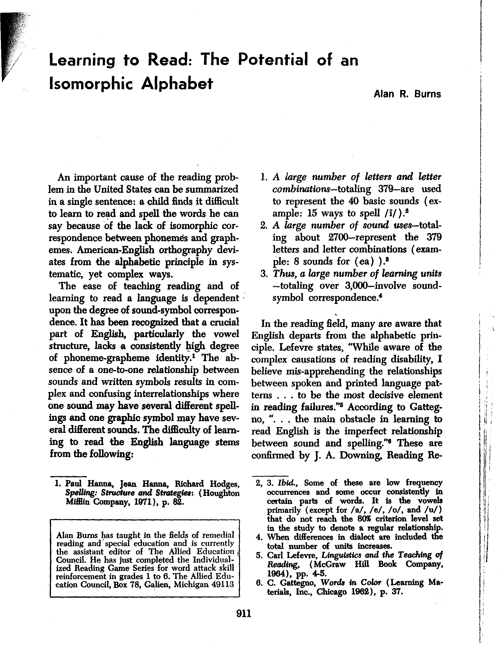 Learning to Read: The Potential for the Isomorphic