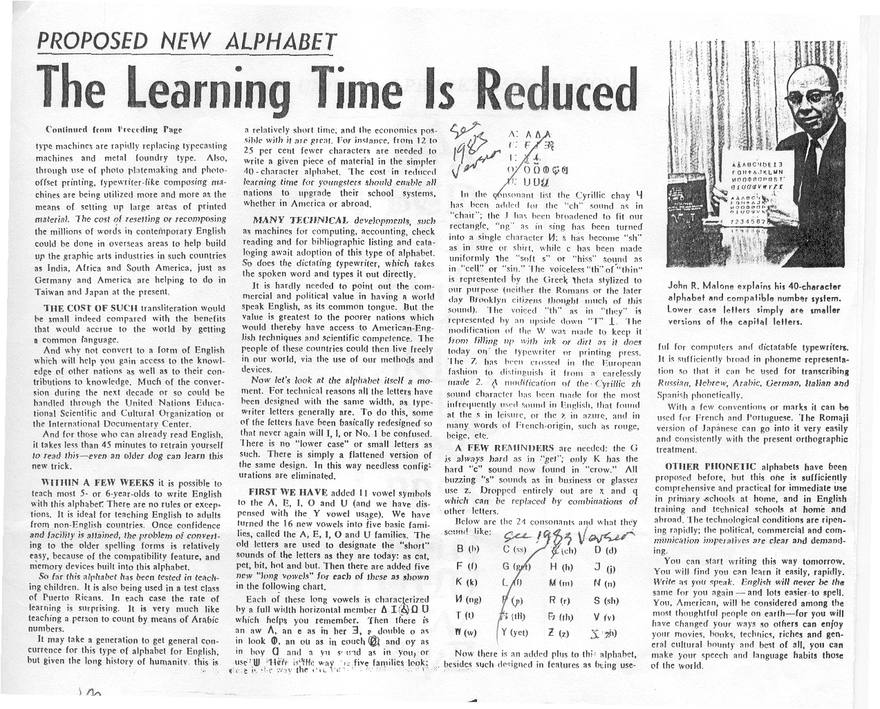 the UNIFON alphabet in the 1950's. He was working for the Bendix