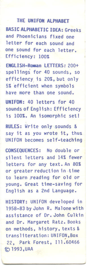 University has developed an alphabet (named UNIFON ) which reproduces